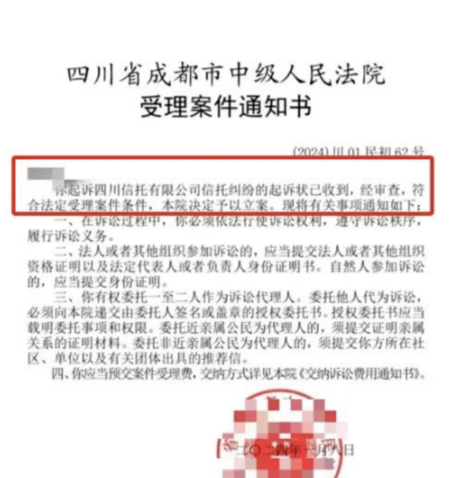 四川信托终于获得法院立案,签约不是唯一选择